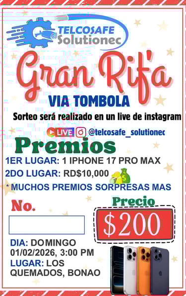🎉 Gran Rifa Telcosafe Solutionec – ¡Participa y Gana en Grande!